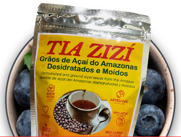 Produzido a partir de sementes selecionadas do caroço do açaí. A bebiba pronta após fervida e coada tem sabor e aroma semelhante ao café tradicional, sem glútem, sem cafeína e sem lactose.